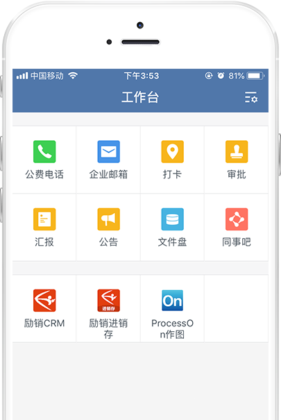 预设打卡、审批等OA应用,提供丰富的第三方应用供选择,还支持API接入自有应用